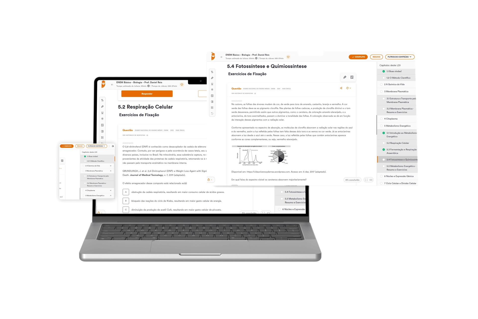 Um poderoso recurso didático que agrega em uma única interface materiais completos em vídeo, escritos, em áudio, questões, mapas mentais e resumos.