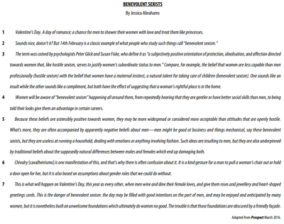 although benevolent sexism can be annoying to women, in reality it causes them very little harm.