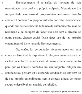 Com base nas ideias de Kant, infere-se que, para que Bertoleza atinja o esclarecimento, ela deve seguir as orientações de João Romão.