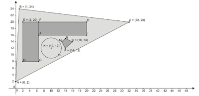 Considere a seguir, no plano cartesiano, a planta feita pelo engenheiro, na qual constam o esboço do terreno, da localização da casa, do gazebo e da piscina.