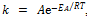em que A é o fator de frequência, EA é a energia de ativação, R é a constante dos gases e T é a temperatura absoluta.