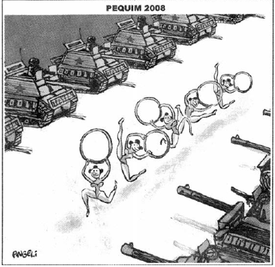 à postura intransigente da China diante das pressões externas por maior liberdade do povo tibetano e do temor ao uso das Olimpíadas para manifestações de protesto.