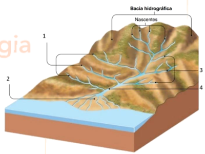 Afluentes da margem esquerda / Foz em Estuário / Afluentes da margem direita / Canal de primeira ordem.
