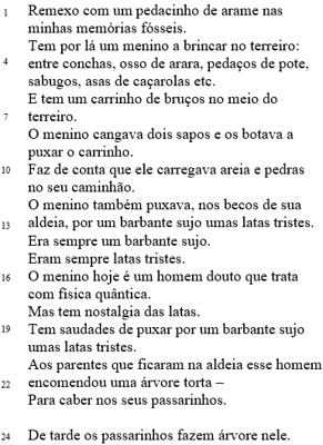 De acordo com o poema, julgue o item.