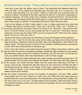 Besides describing the effect of the Brazilian political situation on the media, the first paragraph also mentions that the author had no idea of this situation at the time.