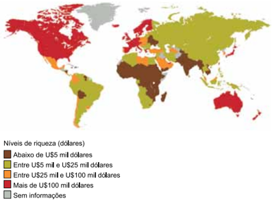 (James Davies, Rodrigo Lluberas e Anthony Shorrocks. Credit Suisse Global Wealth Databook, 2013. Adaptado.)
