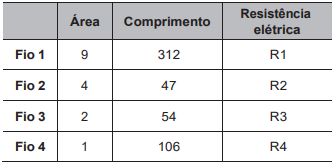 As resistências elétricas dos fios, em ordem crescente, são
