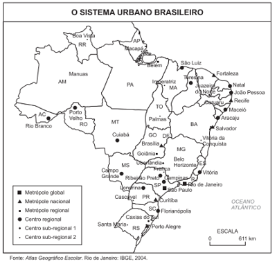 Com base na análise do mapa e nos conhecimentos sobre o espaço urbano brasileiro, é correto afirmar: