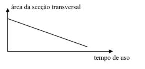 Com o uso, os filamentos das lâmpadas incandescentes perdem átomos por vaporização, tornando-se mais finos. Admita que, por conta da diminuição do diâmetro do filamento, a área da secção transversal do filamento diminua conforme indica