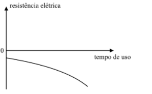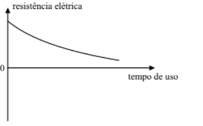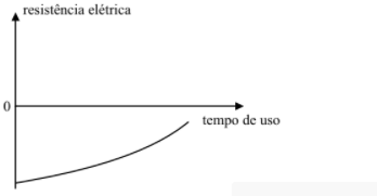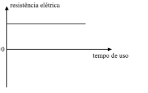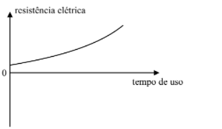Dos gráficos apresentados, aquele que melhor apontaria os valores da resistência elétrica durante a vida útil dessa lâmpada, supondo que a resistividade e o comprimento do filamento se mantenham constantes durante toda a vida útil da lâmpada, é esboçado em