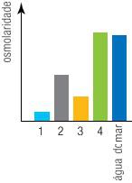 O gráfico abaixo mostra a osmolaridade do plasma sanguíneo de peixes marinhos, em relação à da água do mar.