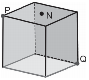 Considere o cubo de aresta 2 cm na figura abaixo, em que os pontos P e Q são vértices do cubo e N é o centro de uma das faces. Duas partículas A e B se deslocam sobre a superfície do cubo, percorrendo o caminho mais curto possível. A partícula A inicia sua trajetória em P e encerra em Q, e a partícula B vai do ponto P ao ponto N e em seguida ao ponto Q. Qual é a diferença em módulo, em cm, entre as distâncias percorridas pelas duas partículas?