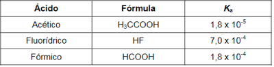 De acordo com as informações da tabela e com base nos conhecimentos sobre ácidos fracos e pH, compare os três ácidos entre si e considere as seguintes afirmativas: