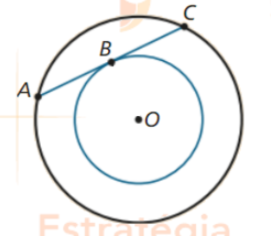 Considere duas circunferências concêntricas de raios distintos e dois pontos A e C na circunferência de raio maior, tal que a corda delimitada por esses pontos seja tangente à circunferência de menor raio em B, conforme mostrado na figura abaixo.