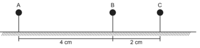 Três esferas de dimensões desprezíveis A, B e C estão eletricamente carregadas com cargas elétricas respectivamente iguais a 2q, q e q. Todas encontram-se fixas, apoiadas em suportes isolantes e alinhadas horizontalmente, como mostra a figura abaixo: