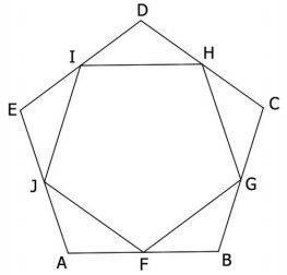 Considere um pentágono regular ABCDE de lado 1. Tomando os pontos médios de seus lados, constrói-se um pentágono FGHIJ, como na figura abaixo.