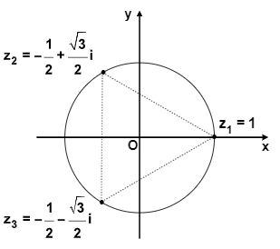 Considere os pontos z₁, z₂ e z₃, indicados no plano complexo abaixo, e que correspondem às raízes cúbicas de 1.