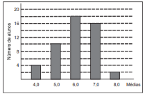 Considere que as médias finais dos alunos de um curso foram representadas no gráfico a seguir.