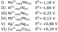 Considere as seguintes semicélulas e os respectivos potenciais-padrão de redução, numerados de I a VI.