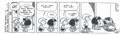 I. Encontra-se na tira expressão que representa a função fática da linguagem, aquela que põe em evidência o contato lingüístico.