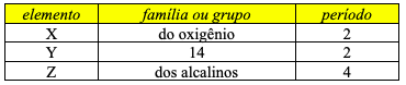 a) Quais são os elementos X, Y e Z?