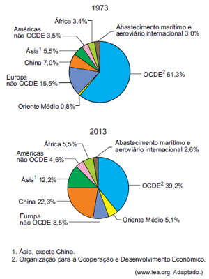 os países membros da OCDE diminuíram sua participação percentual no consumo mundial de energia primária em resposta ao aumento em seu padrão de consumo.