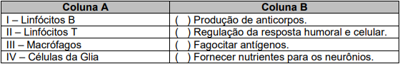 Diferentes tipos celulares desempenham funções específicas em nosso organismo. Relacione os tipos celulares da coluna A com as suas funções na coluna B.