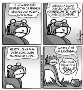 Nessa tirinha, é citado um problema de saúde que, em seres humanos, afeta estruturas constituídas por tecido