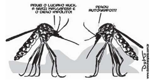 Todo texto apresenta uma intenção, da qual derivam as escolhas linguísticas que o compõem. O texto da campanha publicitária e o da charge apresentam, respectivamente, composição textual pautada por uma estratégia