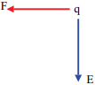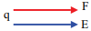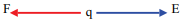 A força elétrica F, que a carga negativa q sofre, e o campo elétrico E, presente no ponto onde ela é fixada, estão corretamente representados por