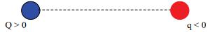Duas cargas elétricas puntiformes, Q e q, sendo Q positiva e q negativa, são mantidas a uma certa distância uma da outra, conforme mostra a figura.