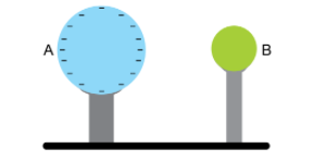 Duas esferas metálicas A e B estão montadas sobre suportes isolantes e afastadas uma da outra. Inicialmente, a esfera A está eletrizada com carga negativa e a esfera B está neutra, como mostra a figura.