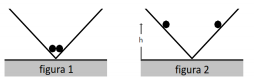 As esferas são liberadas e, devido à repulsão elétrica, sobem pelas paredes do perfil e ficam em equilíbrio a uma altura h em relação à base, conforme representa a figura 2.
