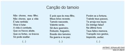 Gonçalves Dias é um dos principais representantes do Romantismo no Brasil, movimento contemporâneo ao processo de consolidação do Estado monárquico brasileiro e que forneceu elementos simbólicos para a construção da identidade nacional. Observe este fragmento de um de seus poemas: