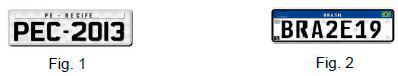 Hoje, em nosso país, existem dois modelos de placas de veículos em circulação. A grande maioria dos carros, caminhões, motos ainda circulam com a placa formada por três letras seguidas de quatro algarismos (Fig. 1) e os veículos novos ou revendidos, têm que utilizar a placa da Mercosul, que é formada por três letras, um algarismo, uma letra e dois algarismos (Fig. 2). Veja as figuras a seguir: