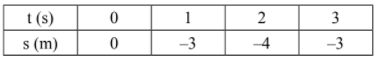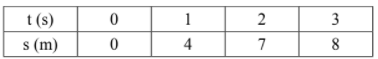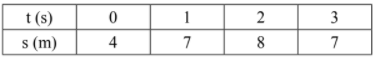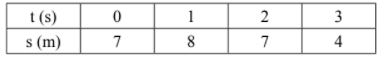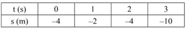 Indique a alternativa que representa corretamente a tabela com os dados da posição, em metros, em função do tempo, em segundos, de um móvel, em movimento progressivo e uniformemente retardado, com velocidade inicial de valor absoluto 4 m/s e aceleração constante de valor absoluto 2 m/s².