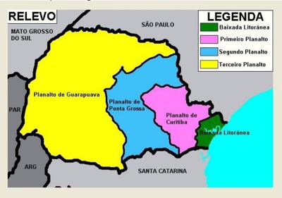 IV. A divisão do território paranaense em Baixada Litorânea, Planalto de Curitiba, Planalto de Ponta Grossa e Planalto de Guarapuava foi considerada a partir da constituição geológica, pois o Planalto de Guarapuava, por exemplo, é formado por rochas sedimentares (Formação Botucatu), que possuem idade Cenozóica.