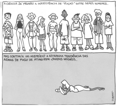 A respeito de questões suscitadas pela charge sobre a desigualdade racial no Brasil, é INCORRETO afirmar que: