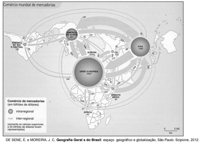 a) identifique qual a região de maior comércio de mercadorias intrarregional e quais as regiões de maior comércio inter-regional.