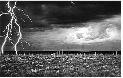 Na obra Campo relampejante (1977), o artista Walter de Maria coloca hastes de ferro em espaços regulares, em um campo de 1600 metros quadrados no Novo México. O trabalho faz parte do movimento artístico Land Art, que trata da