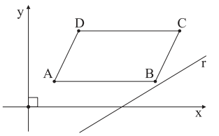 Num sistema cartesiano ortogonal, são dados os pontos A(1, 1), B(5, 1), C(6, 3) e D(2, 3), vértices de um paralelogramo, e a reta r, de equação r: 3x – 5y – 11 = 0.