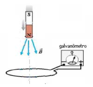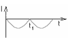 Numa usina hidrelétrica, por exemplo, um gerador usa o fenômeno da indução eletromagnética para converter energia mecânica de uma turbina girando em energia elétrica. Suponha que uma barra magnética, de pequenas dimensões, é movimentada verticalmente para baixo com velocidade constante em direção ao centro de uma espira circular condutora, como mostra a figura abaixo. O instante em que o ponto médio da barra magnética cruza o plano da espira é t₁. Considerando-se que uma corrente positiva é aquela que circula a espira no sentido anti-horário, vista de cima na figura, a alternativa abaixo que melhor representa a dependência temporal da corrente elétrica induzida na espira é: