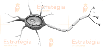 No terminal axônico (5) ocorre a liberação de sinalizadores químicos da célula para a fenda sináptica.
