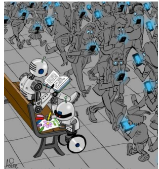 Observe a charge abaixo, intitulada “Inteligência Artificial”, do artista plástico espanhol AsierSanz Nieto: