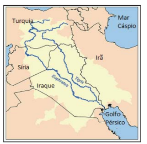 A água é um recurso natural importante para o desenvolvimento da vida. Na história da humanidade, ela tem sido objeto de disputa entre os diversos grupos sociais. A figura mostra uma parte da região do Oriente Médio, onde a disputa pelo acesso à água é explicado pela