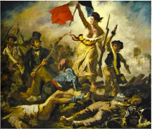 Observe a obra do pintor Delacroix, intitulada A Liberdade guiando o povo, de 1830.