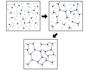 Observe a representação a seguir, em que os círculos brancos representam uma espécie química (molécula ou íon molecular) e os círculos coloridos, outra.
