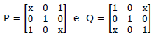 satisfazem a igualdade P.Q = Q.P. Se P e Q são matrizes do tipo acima e M = P.Q = Q.P, então, o resultado da soma dos quadrados dos valores de x, tais que o determinante de M é igual a zero, é