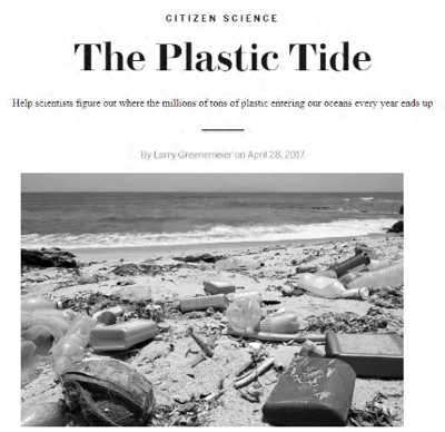 GREENEMEIER, L. The Plastic Tide. In: Scientific American (online) Citizen Science. 28 abr. 2018. Disponível em www.scientificamerican.com