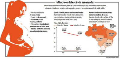 No Brasil, em 2015, foram cerca de 574 mil crianças nascidas vivas de mães entre 10 e 19 anos. Em todo o mundo, uma em cada cinco mulheres será mãe antes de terminar a adolescência. Os dados são do Sistema de Informação sobre Nascidos Vivos, do Ministério da Saúde, divulgado este ano, e do relatório Maternidade precoce: enfrentando o desafio da gravidez na adolescência, do Fundo de População das Nações Unidas, de 2013.